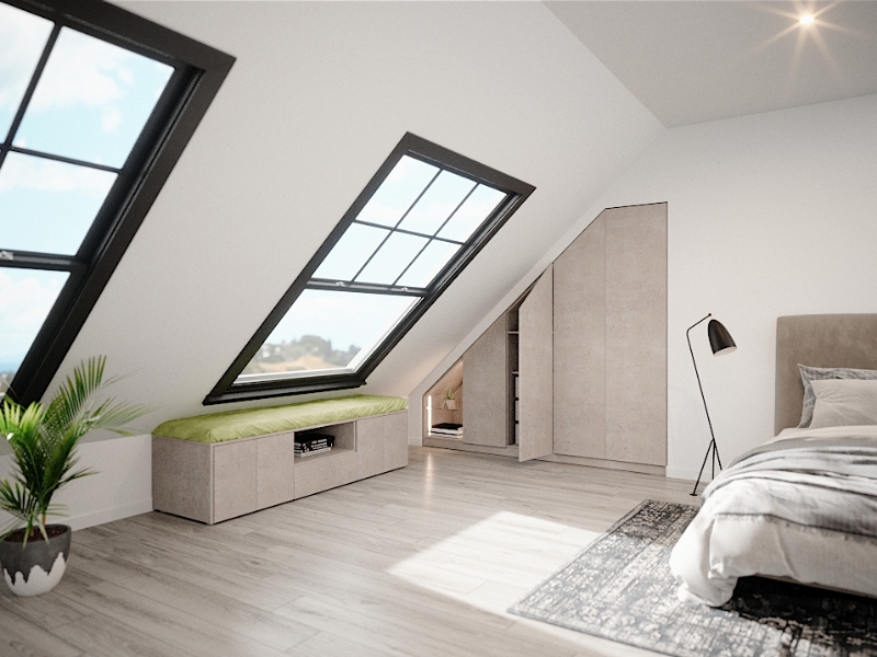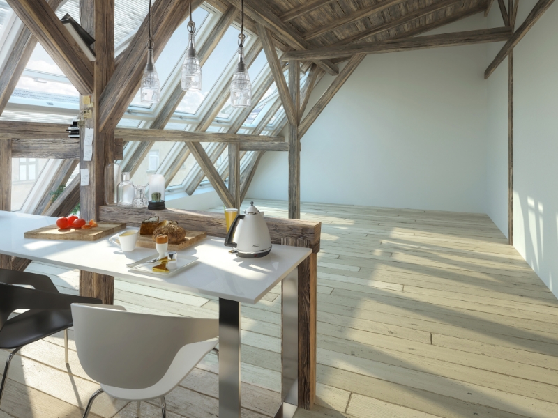 Ein unschlagbarer Vorteil eines Arbeitsplatzes im Dachgeschoss ist das natürliche Tageslicht. Die Dach- und Giebelfenster lassen ausreichend Sonnenlicht hindurch, das besonders angenehm für die Augen ist.