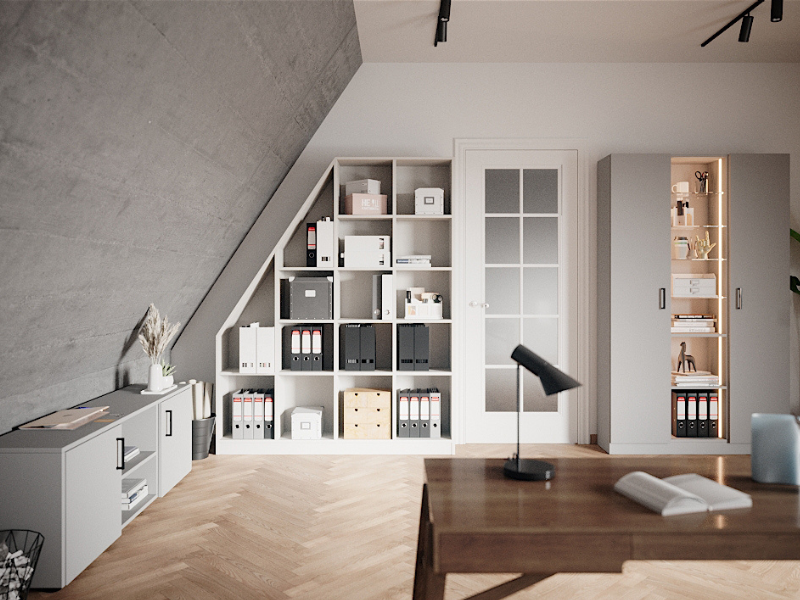 Dass man bei schrankwerk Einbauschränke für zahlreiche Dachschrägen auf Maß planen kann, ist vielen Kunden bekannt. Ein häufiges Problem sind allerdings Zimmertüren, die sich an einer Giebelseite unter der Dachschräge befinden und die Integration des Schrankes vermeintlich unmöglich machen. Das Gegenteil ist der Fall: Plane doch einfach Dein Einbauschrank um die Türzarge herum. Auf diese Weise gewinnst Du jede Menge Stauraum und kaschierst sogenannte tote Flächen. Tipp: Das Ganze lässt sich natürlich genauso in einem Vollgeschoss umsetzen. Und wer seinen Dachschrägenschrank ohne Zimmertüren planen kann: Umso besser!