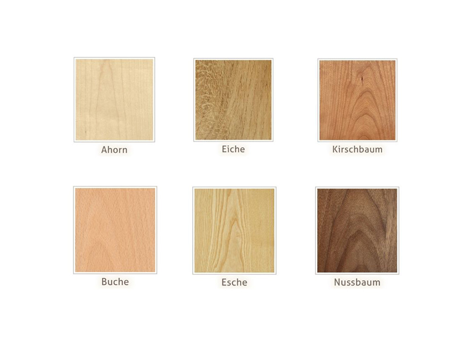 Harte Hölzer sind Eiche, Buche, Esche, Kirschbaum, Nussbaum und Ahorn.
