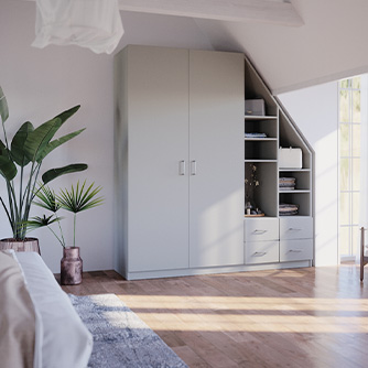 In nur wenigen Schritten planst Du Möbel nach Maß ganz einfach online! Verwirkliche Deine Ideen von Schränken, Regalen, Boards und Kommoden, die perfekt zu Dir und Deiner Wohnung passen. Da die Maße, Ausstattungen und Dekore frei und flexibel von Dir bestimmt werden, entstehen Lösungen für verschiedene Raumsituationen wie Dachschrägen, Nischen und Treppen.