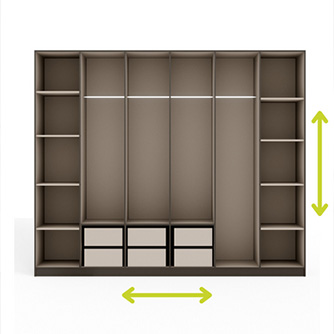 Bei Möbeln nach Mass wählst Du die Ausstattungen selbst. Das richtige Zubehör erweckt Dein Möbelstück zum Leben! Du kannst die Elemente einfach im Konfigurator hinzufügen!