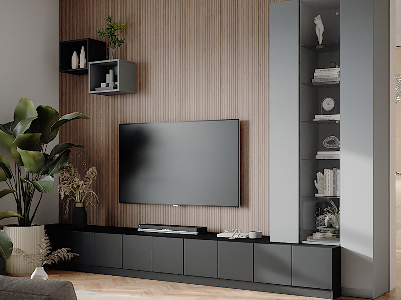 TV-Möbel kreieren Stauraum rund um den Fernseher, indem sie Platz für Mediengeräte, DVDs, Kabel und mehr bieten. Sie kombinieren die Unterbringen des TVs mit der Aufbewahrung von Elektronik und Zubehör in einem Möbelstück, wodurch kein separater Stauraum benötigt wird. Ein TV-Schrank schafft Ordnung und Übersicht, da vor allem Kabel unsichtbar hinter und in ihnen verschwinden. Statte den TV-Schrank z. B. mit geschlossenen Fächer oder Schubladen aus, um Staub fernzuhalten und eine harmonische Front zu erhalten. So vereinen TV-Schränke Funktionalität und Ordnung in einem kompakten Design.