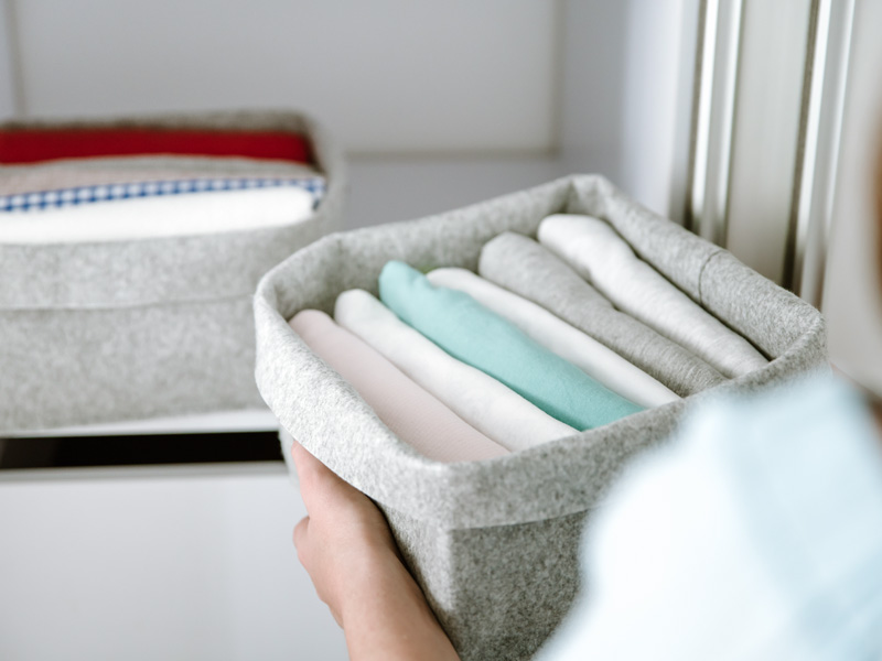 2. Gut sortiert ist halb verstaut: Körbe und Boxen helfen Dir dabei, Kleinteile, Klamotten, saisonale Deko und Hauswaren platzsparend und übersichtlich unterzubringen. Dank der Boxen wird der komplette Platz in Schrank oder Regal ausgenutzt. Stimme die Größe der Fächer im Konfigurator auf Dein bevorzugtes Stauraumsystem ab - so geht kein Platz verloren!