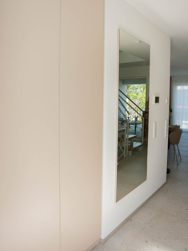 Einbauschränke nutzen in Nischen, Ecken und sogar über ganze Wände jeden verfügbaren Zentimeter. Da sie maßgefertigt werden, passen sie perfekt in den Raum und bieten mehr Platz als freistehende Möbel, ohne zusätzlichen Platz zu beanspruchen. So verschwinden Alltagsgegenstände ordentlich hinter Türen, was für ein aufgeräumtes und harmonisches Wohngefühl sorgt. Ein weiterer Vorteil ist, dass man die Innenaufteilung flexibel gestalten kann – von Kleiderstangen über Regalböden bis hin zu Schubladen ist alles möglich. Dadurch helfen Einbauschränke, auch kleinere Räume effizienter zu organisieren.