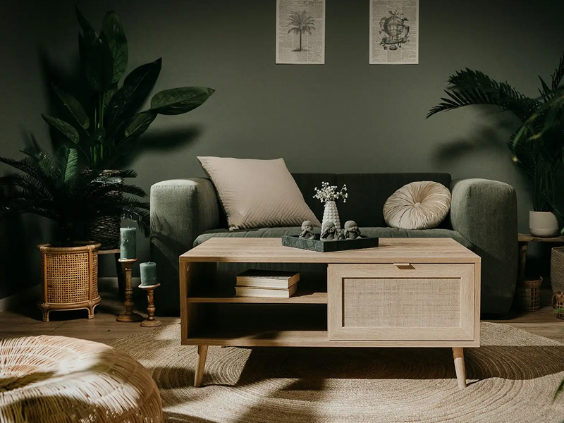 Setze auf Möbel mit verstecktem Stauraum, wie Sitzbänke mit Aufbewahrungsfächern oder Couchtische mit integrierten Schubladen. Solche Möbel lassen sich leicht in den Raum integrieren und bieten unauffälligen Stauraum.