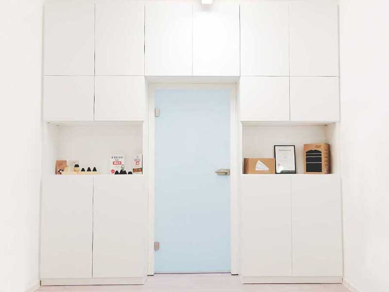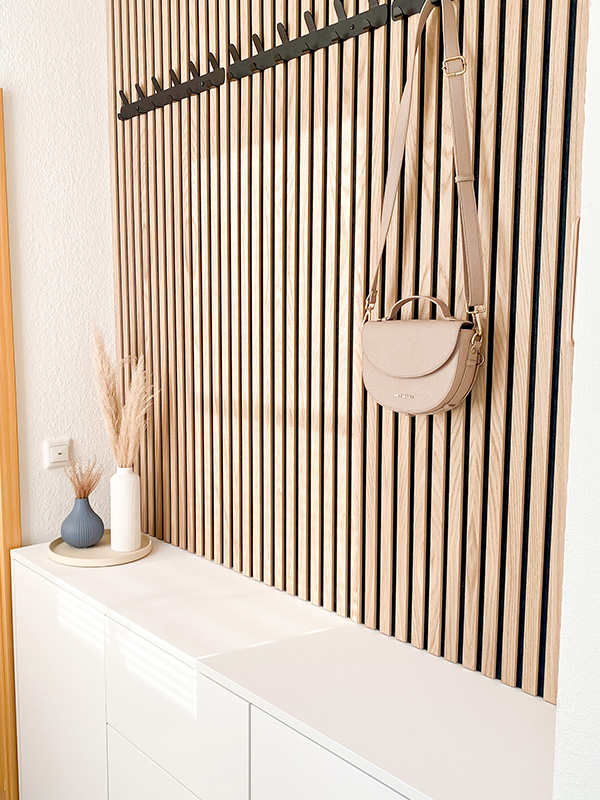 Fast immer ungenutzt, birgt der Platz über der Tür großes Potential für cleveren Stauraum. Hier kannst Du vor allem Dinge verstauen, die Du wirklich nur selten oder saisonal benötigst, z. B. die dicke Daunendecken für Dein Winterbettzeug. Mit Hängeboards oder Hängeschränken schaffst Du großzügigen Stauraum über der Tür. Kombiniere diesen mit weiteren Schränken und Regalen, um eine harmonische Einheit zu kreieren. Bedenke, dass Du möglicherweise eine kleine Trittleiter oder eine Hocker verwenden solltest, um an die oberen Fächer zu reichen.