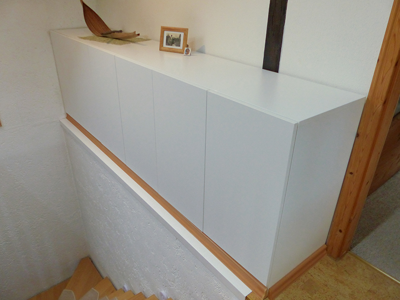 Der Drempel beschreibt die kurze Wandseite unterhalb der Dachschräge und wird oft auch als Kniestock bezeichnet. Mit Lowboards oder flachen Schränken mit hinteren Schrägen, sogenannten Drempelschränken, schaffst Du jede Menge Stauraum in einem Bereich Deiner Wohnung, der sonst verloren geht. Zudem gleichst Du die Wand mit den eingepassten Schränken an, sodass eine harmonische Front entsteht. Drempelschränke eignen sich hervorragend für Aktenordner und Bürozeug, geben aber als offenes Regal auch ein stilvolles Bücherregal ab.