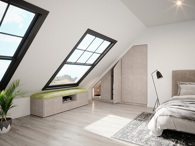 Dachschrägen gehören zu den kniffligen Raumsituationen. Ein gerader Schrank würde entweder gar nicht unter die Schräge passen oder enorm viel Platz verschwenden. Schränke mit Schräge lösen genau diese Herausforderung: Jeder Millimeter wird platzsparend für maximalen Stauraum ausgenutzt!