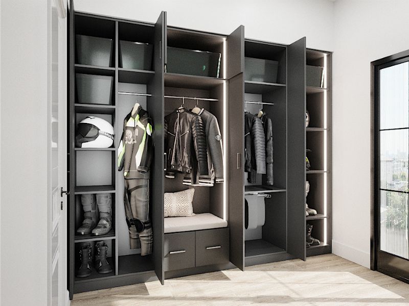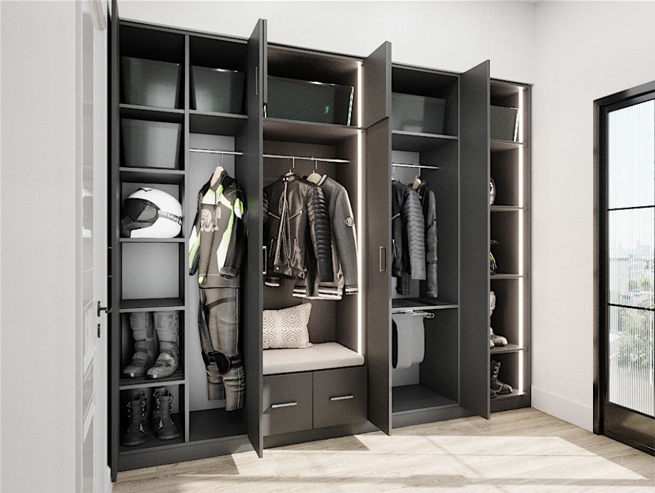 Beispiel für einen Schrank für die Motorradbekleidung im Eingangsbereich