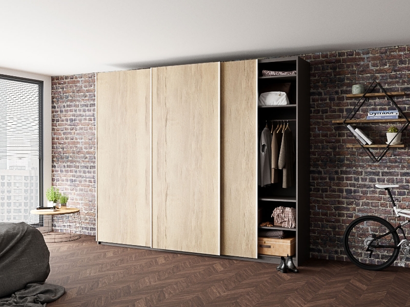 Die maßgefertigten Schrankwelten in Eichenoptik von schrankwerk bestehen aus beschichteten Holzwerkstoffen. Der Werkstoff für unsere Möbel wird aus Spänen in der industriellen Holzproduktion zu stabilen Platten verarbeitet. Das ist besonders umweltschonend, denn auf diese Weise muss kein Baum gefällt werden. Durch ihre haptischen Effekte wirken die Eichendekore wie Massivholz und haben einige Vorteile. Zum Beispiel sind sie leichter als Massivholzmöbel, behalten auch unter Sonneneinstrahlung ihre Farbe, sind durch Melaminbeschichtungen für Feuchträume geeignet und leicht zu reinigen. Moderne, antibakterielle Beschichtungen sorgen dafür, dass Keime und Bakterien keine Chance haben.