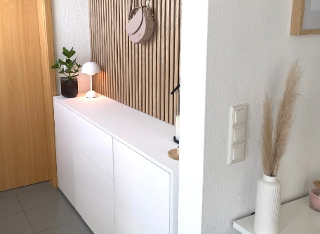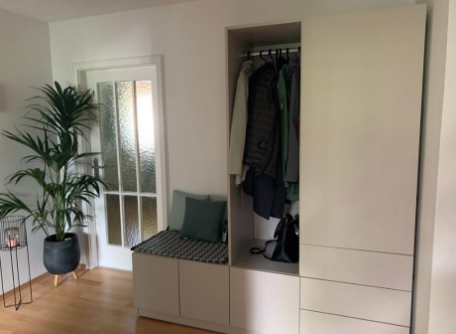 In diesem Fall gab es beim Kunden keine besonders schwierige Raumsituation, um Stauraum zu schaffen. Hier war es die Wunschvorstellung von Torsten M. und Katrin K., die eine maßgeschneiderte Lösung erforderte. Es muss also nicht immer nur eine knifflige Raumsituation sein, um auf einen Maßschrank zurückzugreifen. Wenn Du spezielle Wünsche und Vorstellungen für Deinen Schrank hast, kannst Du diese bei uns umsetzen. Wir haben Dir dieses tolle schrankwerkstück auch als Planungsvorlage gespeichert. Im Shop findest Du diese unter Glasvitrine Thorsten. Und wenn Du bei der Planung Unterstützung benötigst, steht Dir unser Kundenservice wie immer jederzeit gerne zur Verfügung.