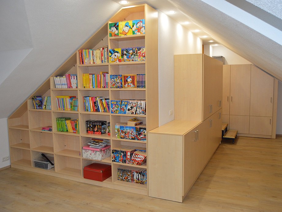 Du fragst Dich, wie Du freien Platz auf dem Dachboden am besten für Ihre Einrichtung nutzen kannst? Dann hast Du bestimmt schnell gemerkt, dass dieses Unterfangen einige Komplikationen mit sich bringen kann. Ein Dachbodenzimmer mit Schrägen auf beiden Seiten ist wohl eine der kniffligsten Raumsituationen. Passende Möbel für den Dachboden zu finden, ist gar nicht so einfach. So ging es auch Familie S. auf deren Dachboden nicht nur zwei Dachschrägen, sondern auch eine zusätzliche Ecke, nach einer ganz besonderen Maßlösung verlangt haben.