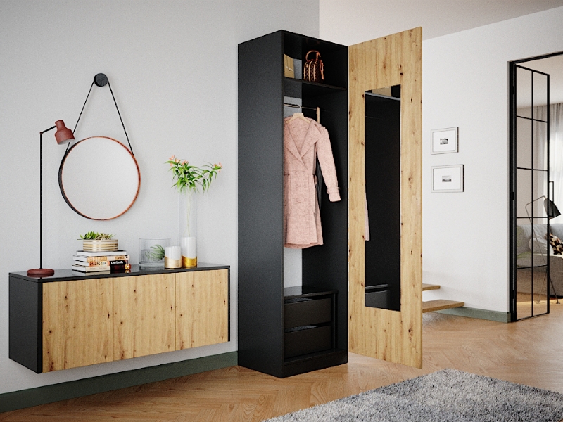 Zweiteiliges Garderobenset im Dekor Graphit, kombiniert mit Eiche.