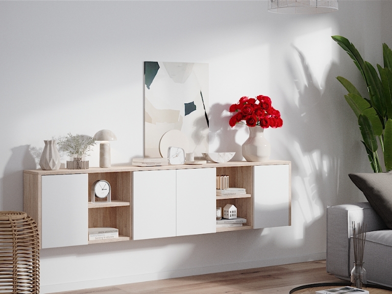 Sideboards zum Hängen sind nicht nur der letzte Schrei. Sie schaffen auch eine besondere Wirkung im Raum. Vor allem kleine Zimmer profitieren von den hängenden Möbeln: Je weniger Bodenfläche verstellt ist, umso größer wirkt der Raum. Praktischer Nebeneffekt: Bodenwischen fällt ebenfalls deutlich leichter.
