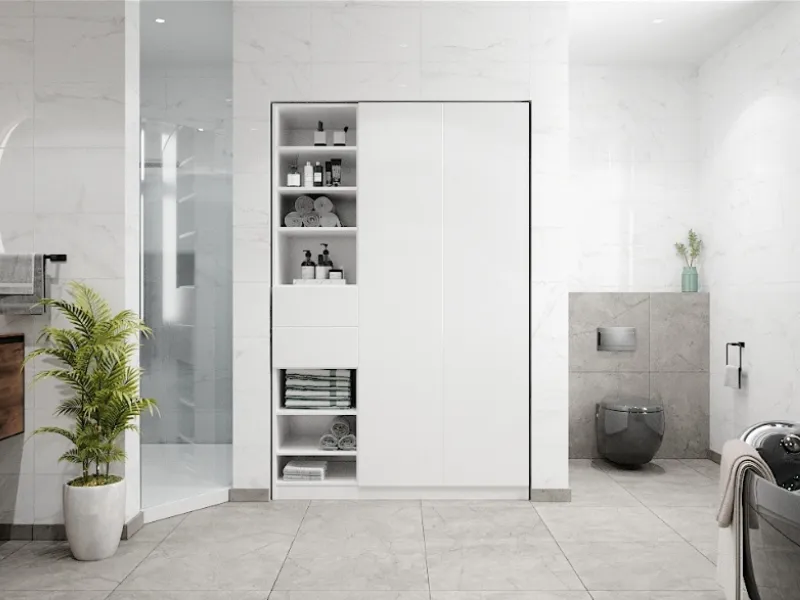Natürlich beginnt und endet die Farbpalette nicht bei Weiß: Auch für hellgraue Wände gibt es bei uns das passende Dekor für den Schrank. Besonders wichtig ist diese Abstimmung in kleinen und schmalen Räumen, die für Stauraum genutzt werden. Der Flur und andere schmale Zimmer wirken durch farblich abgestimmte Möbel deutlich offener und optisch größer – ein schöner Nebeneffekt!