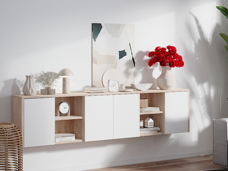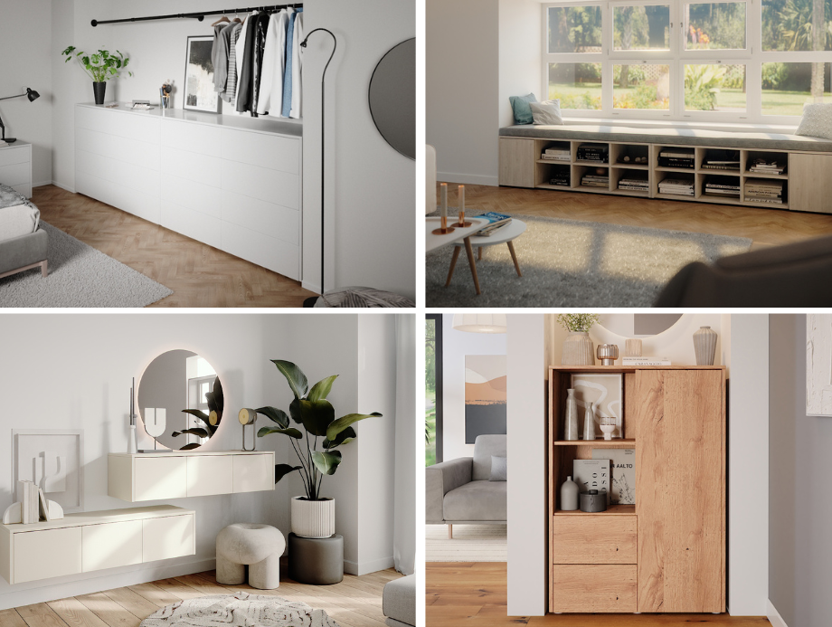 Sideboards unterscheiden sich auf den ersten Blick kaum von Kommoden, weisen aber ein paar deutliche Unterschiede auf: Sideboards können z. B. um einiges breiter sein als Kommoden. Sie werden dann oft als Anrichte verwendet oder als Highlight im Flur mit Deko, Pflanzen und persönlichen Dingen. Sideboards kommen außerdem mit Schubladen, Schranktüren und offenen Fächern. Du kannst den Stauraum also ganz flexibel in unserem Konfigurator planen und individuell nutzen – je nach Funktion und Einsatzort.