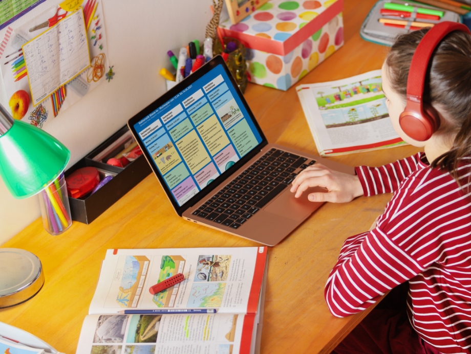 Für ein Schulkind ist ein höhenverstellbarer Schreibtisch ideal. Dass dieser unbedingt elektrisch und stufenlos verstellbar ist, ist nicht nötig. Es gibt auch günstigere Alternativen, bei denen die Tischbeine auf verschiedene Stufen gehoben werden. Der Schreibstich wächst also mit dem Kind mit. Achte auch auf eine ausreichend große Tischplatte, auf der Dein Kind basteln und kreativ werden kann.