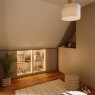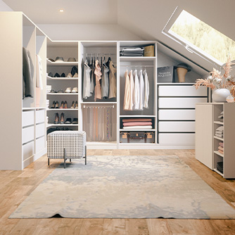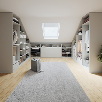 Diese „Walk-in“ Lösung nutzen viele Hausbesitzer, um beispielsweise den Platz unter der Dachschräge oder den an das Schlafzimmer grenzenden Nebenraum optimal auszunutzen.