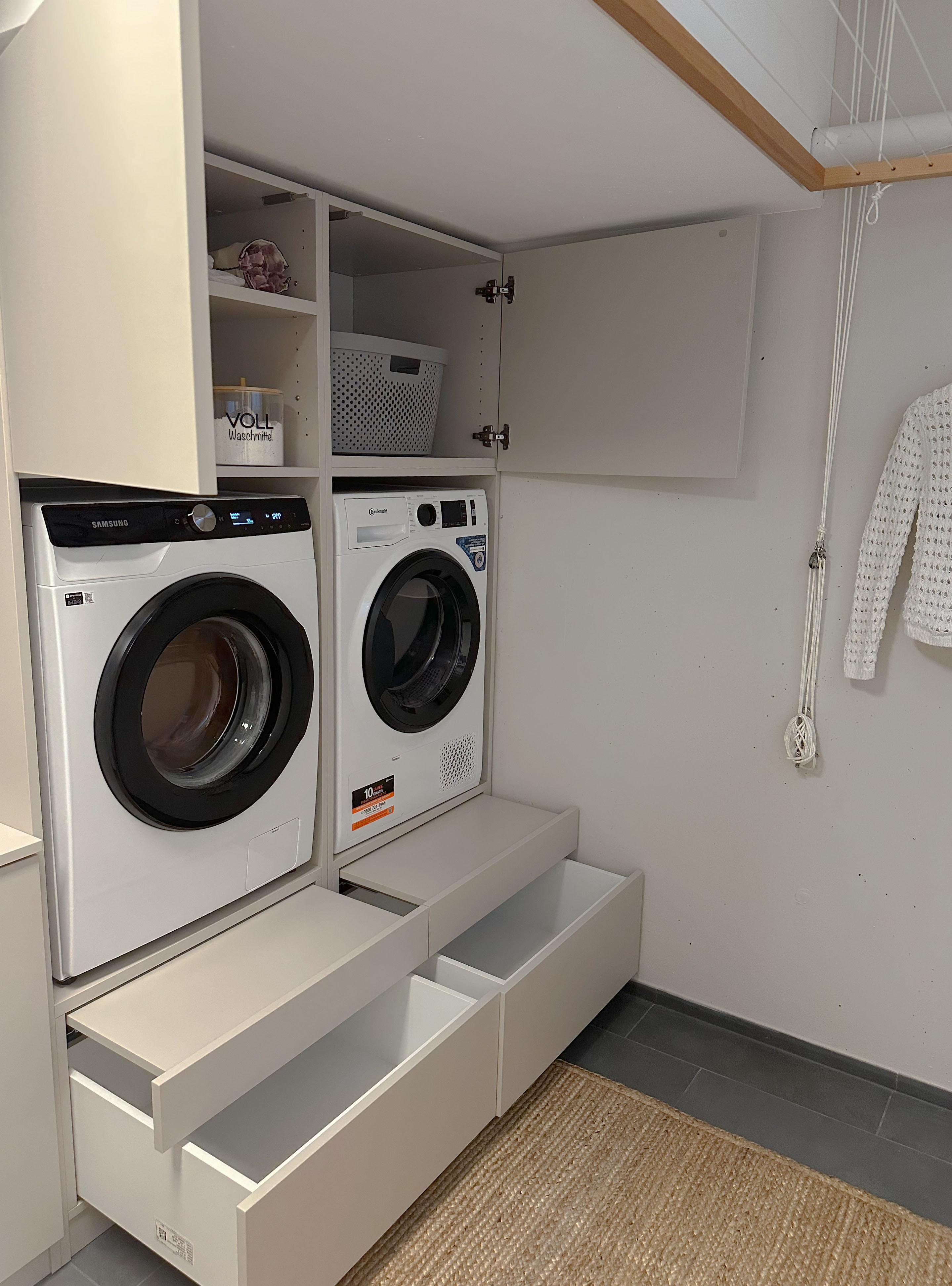 Eindrücke der Waschmaschinenschränke bei unseren Kunden & Kundinnen